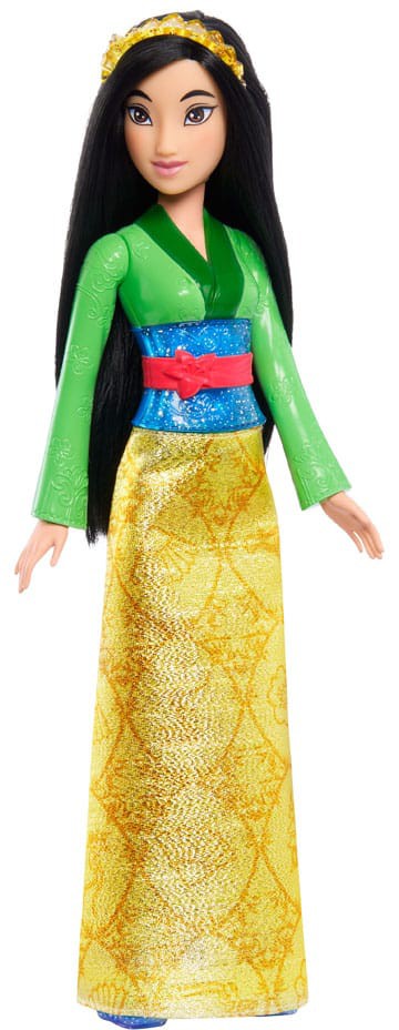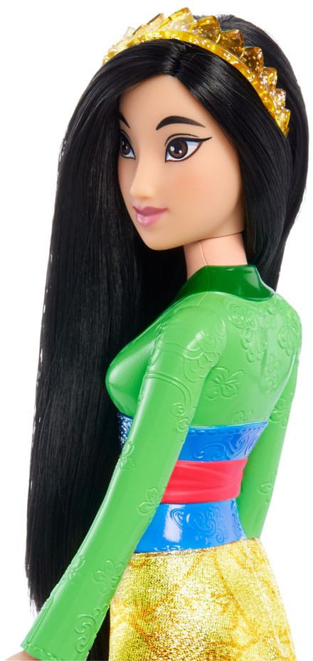 Meet this Mulan doll, inspired by the courageous and strong-willed princess from the classic Disney movie. This posable fashion doll is shown in a sparkling outfit and accessories that include shoes and a tiara. In her signature look from the movie, this Mulan doll is ready for any adventure! Doll cannot stand alone.