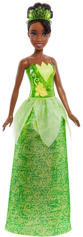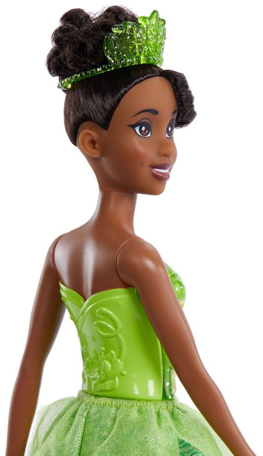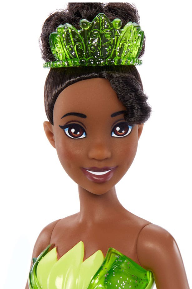 Meet this Princess Tiana doll, inspired by the ambitious and determined heroine from Disney's The Princess and the Frog. This posable fashion doll is shown in a sparkling outfit and accessories that include shoes and a tiara. In her signature look from the movie, this Tiana doll is ready for any adventure! Doll cannot stand alone.