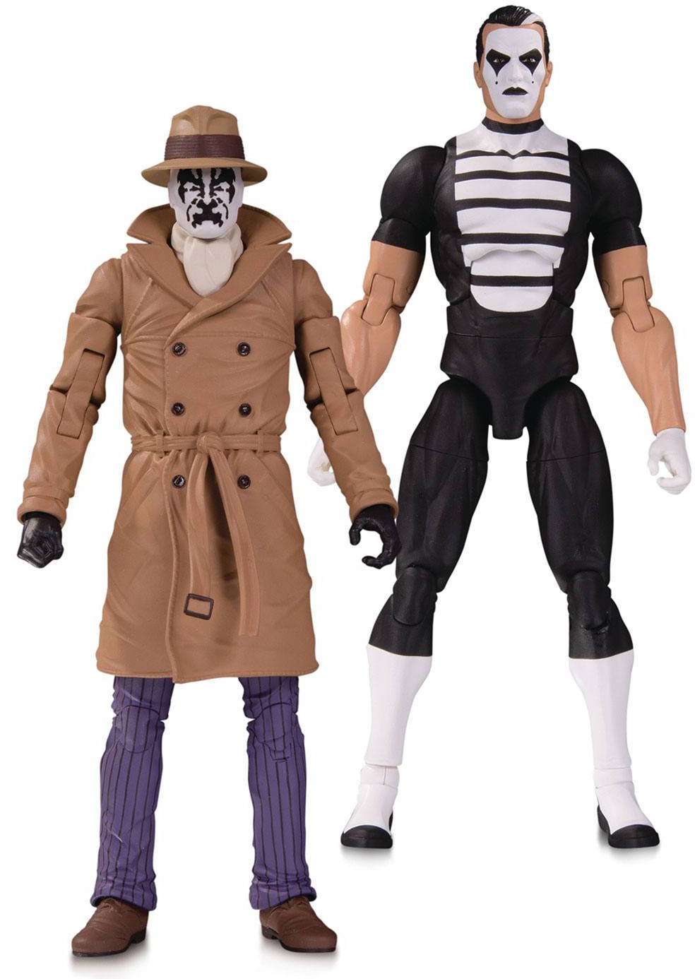 The end is here in Doomsday Clock, the series that brings by Geoff Johns and Gary Frank's hit series. This 2-pack includes the uncompromising vigilante Rorschach and the Mime, a silent and invisible-weapon-wielding loose cannon. Each figure is 18 cm tall and loaded with dynamic articulation points. Combine these figures with the Doomsday Clock action figure line to complete the set.