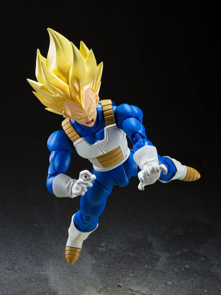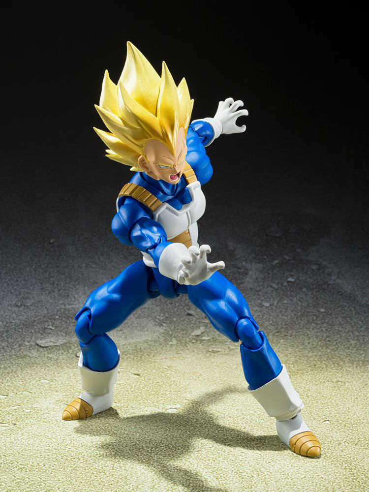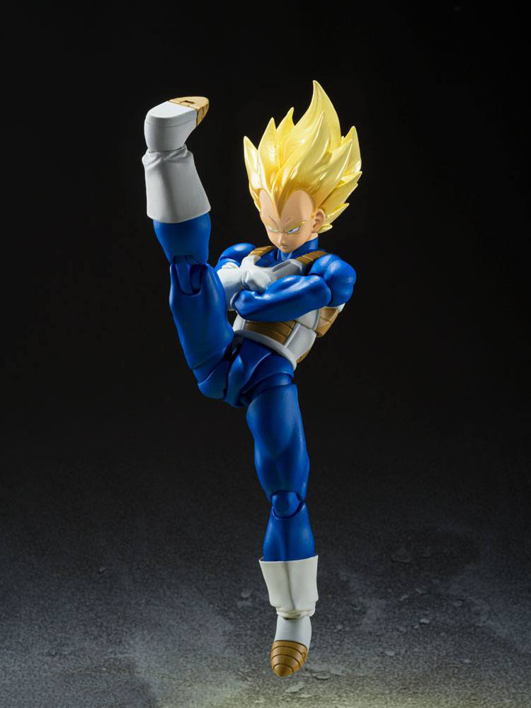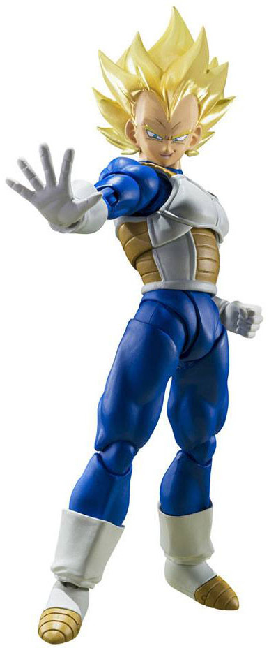 From "Dragon Ball Z," Super Saiyan Vegeta (Awakened Super Saiyan Blood) joins S.H.Figuarts! Featuring dramatic colors that evoke his on-screen appearance, plus numerous option parts that let you re-create favorite scenes.