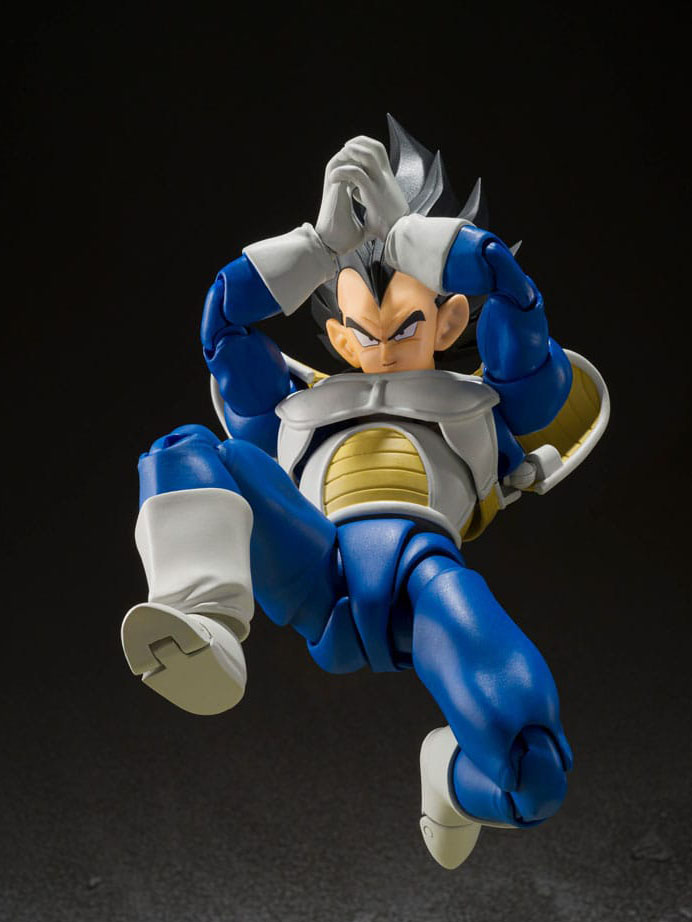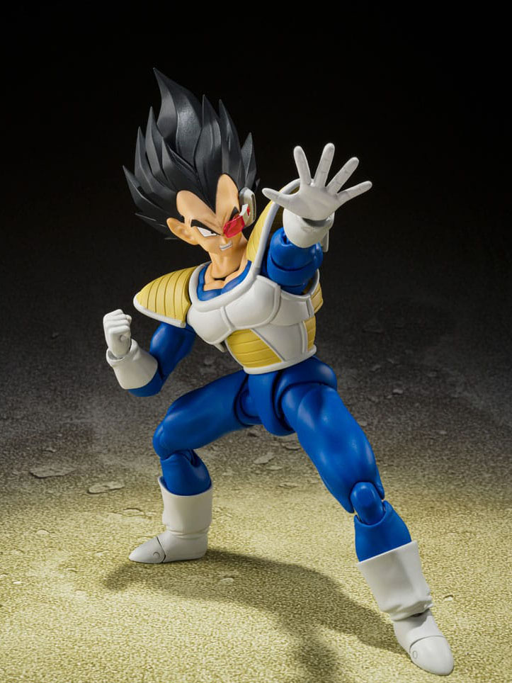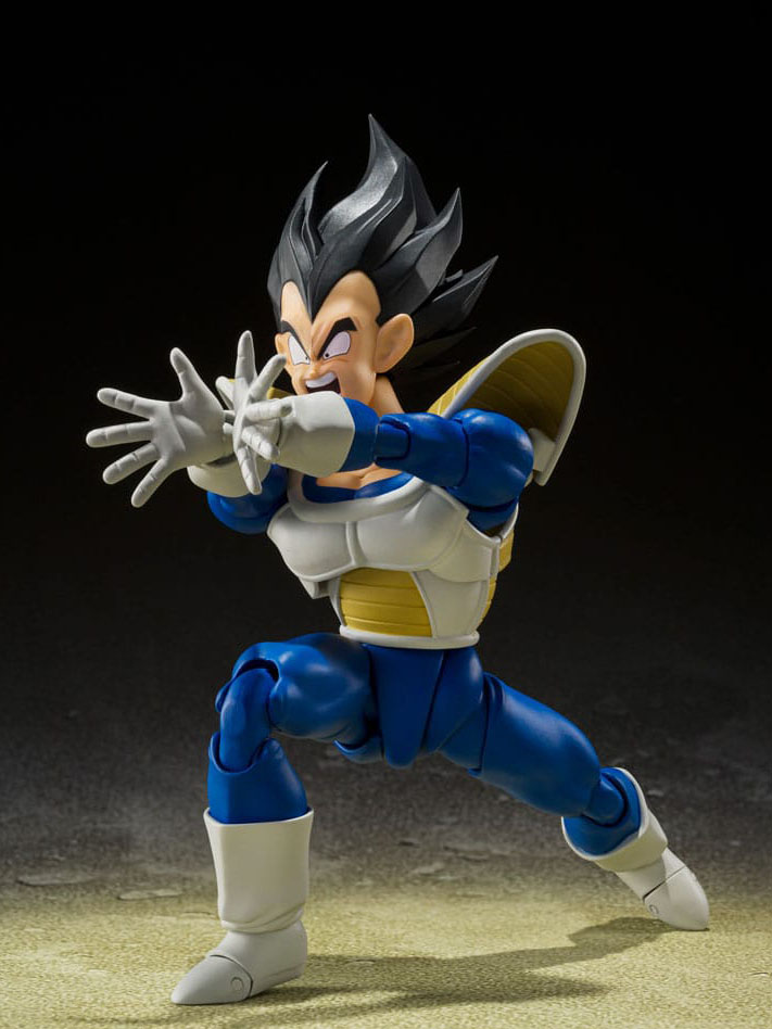 VEGETA -24000 POWER LEVEL- from "Dragon Ball Z" joins S.H.Figuarts! Optional faces including shouting, grimacing, and sneering expand your display possibilities. A removable Scouter is included as well. Utilizes the same popular shoulder armor that was used on the S.H.Figuarts Tulece for excellent posability! Re-create your favorite scenes.