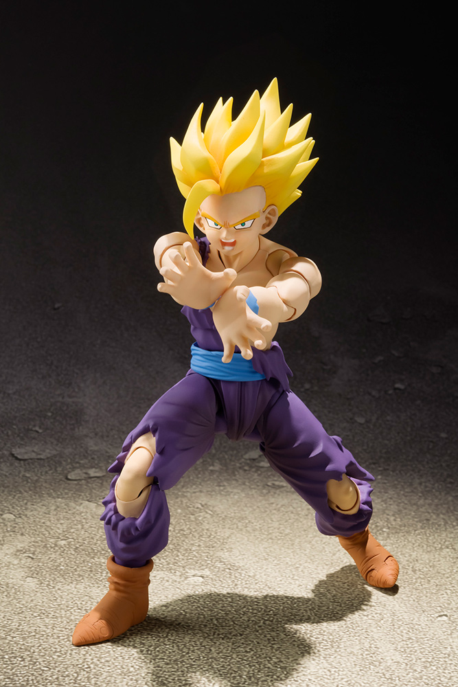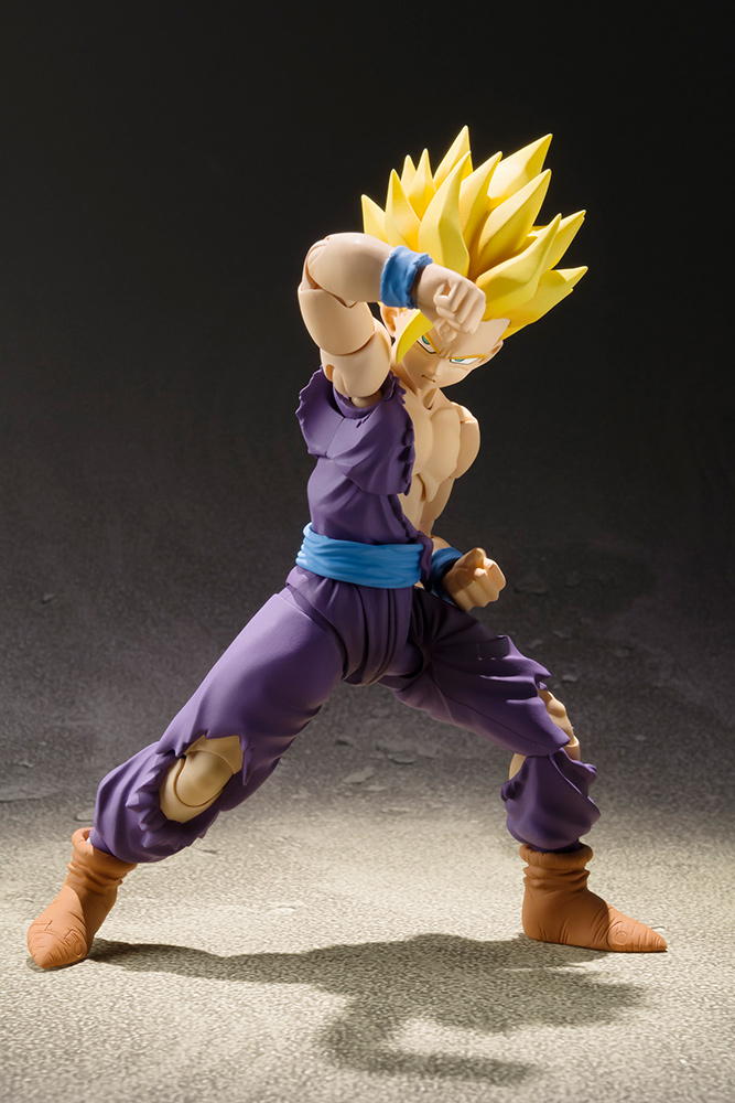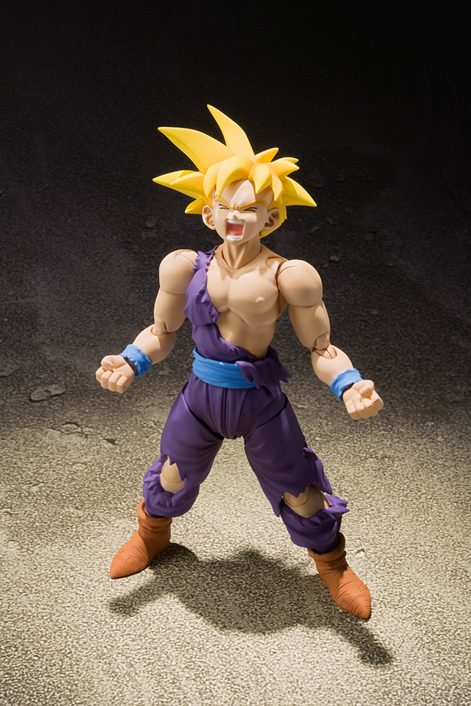 Super sculpt and super articulation make this version of Super Saiyan Son Gohan a must have for collectors of the S.H.Figuarts Dragonball series. The design is based upon the standoff with Cell and the set includes faces to re-create this scene.