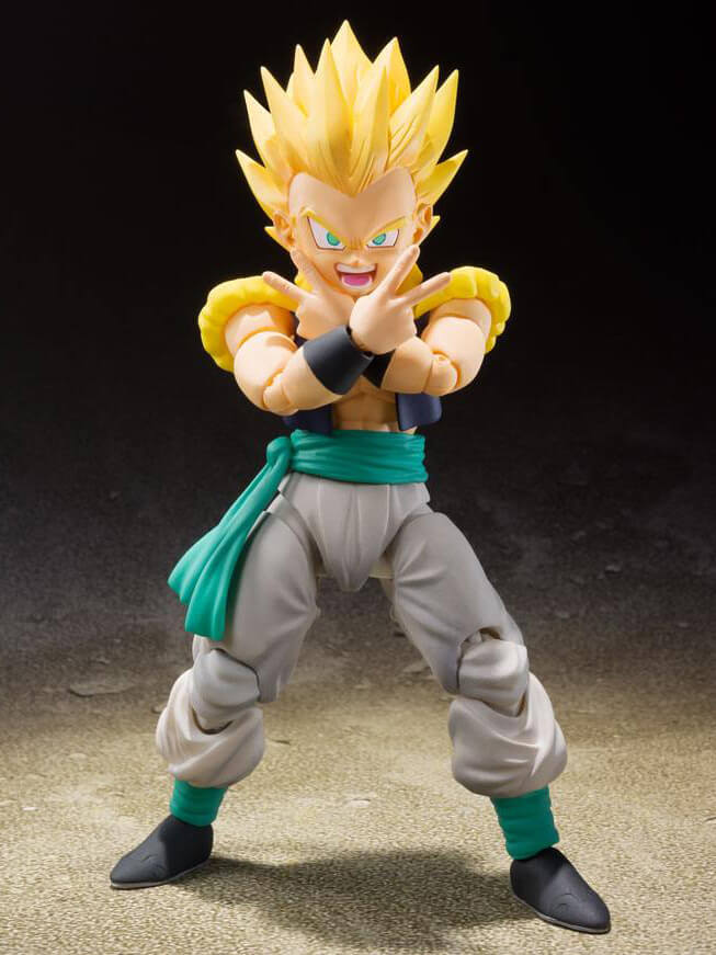 Fusion! S.H.Figurarts is proud to announce GOTENKS. A favorite of fans, he's cocky -- and strong enough to back it up! This figure features both incredible posability and accurate sculpting, with translucent parts for added realism in his Super Ghost and Galactic Donut attacks! The set includes two pairs of left and four right optional hands, two optional expression parts, Super Ghost Kamikaze Attack parts, Galactic Donut parts, Galactic Donut effect stand, and a stand for the figure.