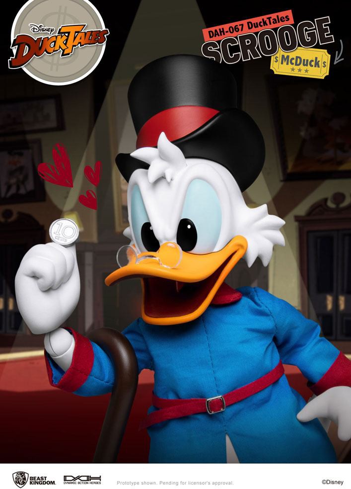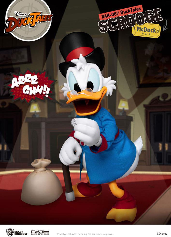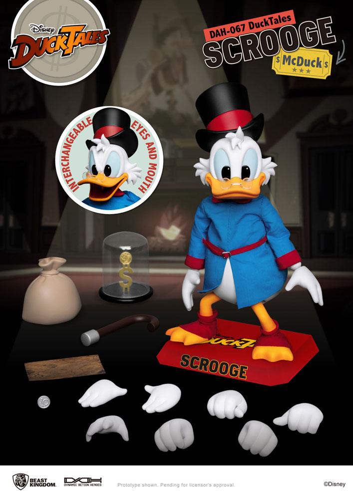 Beast Kingdoms mycket rörliga serie, Dynamic 8ction Heroes, har lanserat ett nytt mästerverk, Scrooge McDuck med arton rörliga leder över kroppen. Figuren kommer med fem par utbytbara händer och två typer av mun- och ansiktsdesign. Scrooges kläder är gjorda av äkta tyg. Den klassiska blå kostymen och den svarta hatten har återställts troget för att visa Scrooges gentlemannamässigt högklassiga temperament. Ytterligare exklusiva tillbehör ingår, såsom det mycket uppskattade myntet (det första myntet som Scrooge tjänade), en skattkarta, hans signaturkäpp och en pengasäck av linne. Mångfalden av tillbehör ger dig frihet att leka med figuren som du vill. Fans av Uncle Scrooge kommer inte att vilja missa denna figur!