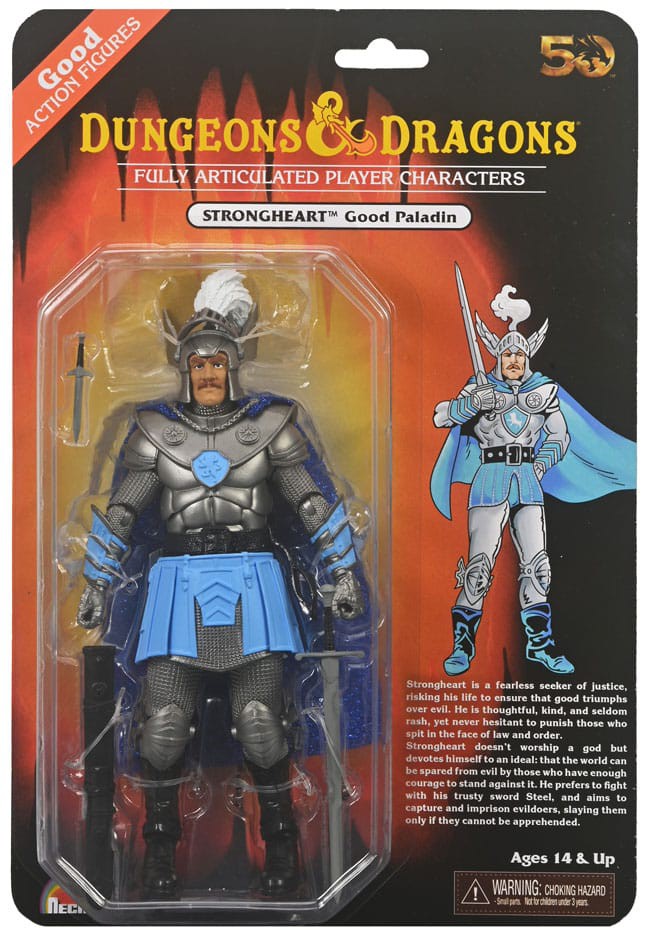 Celebrate the 50th anniversary of Dungeons & Dragons with NECA and WizKids! For this special occasion we have reimagined the classic Strongheart action figure release for the modern collector's market, with special touches to celebrate 50 years of D&D. Featuring a retro paint deco, the figure includes a sword and sheath, dagger, articulated helmet visor, and vintage style cloth cape. This 50th Anniversary Strongheart action figure comes on blister card packaging that is a tribute to the original release.