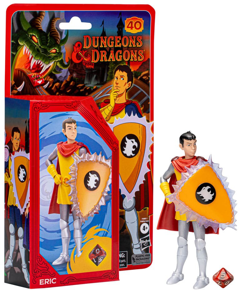 This Eric action figure contains Griffon shield and magic effect accessories and a d10 that's exclusive to this Cartoon Classics figure. With packaging inspired by the original cartoon artwork, these collectible figures will look great on your shelf, in or out of the box.