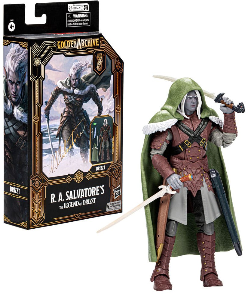 The legend continues with this 6-inch-scale Drizzt action figure -- the perfect addition to any fan's Dungeons & Dragons collection! Featuring premium packaging boasting a facsimile of R.A. Salvatore's signature, this Dungeons & Dragons Drizzt toy with fit right in with your display of other Golden Archive figures. (Figures each sold separately. Subject to availability.) OPEN THE DOORS TO THE GOLDEN ARCHIVE. These 6-inch scale, premium action figures and collectibles are inspired by Dungeons & Dragons lore and entertainment from nearly 50 years. Featuring the deco, articulation, and poseability one expects from Hasbro collectible figures with the characters, classes, and species you love from D&D.