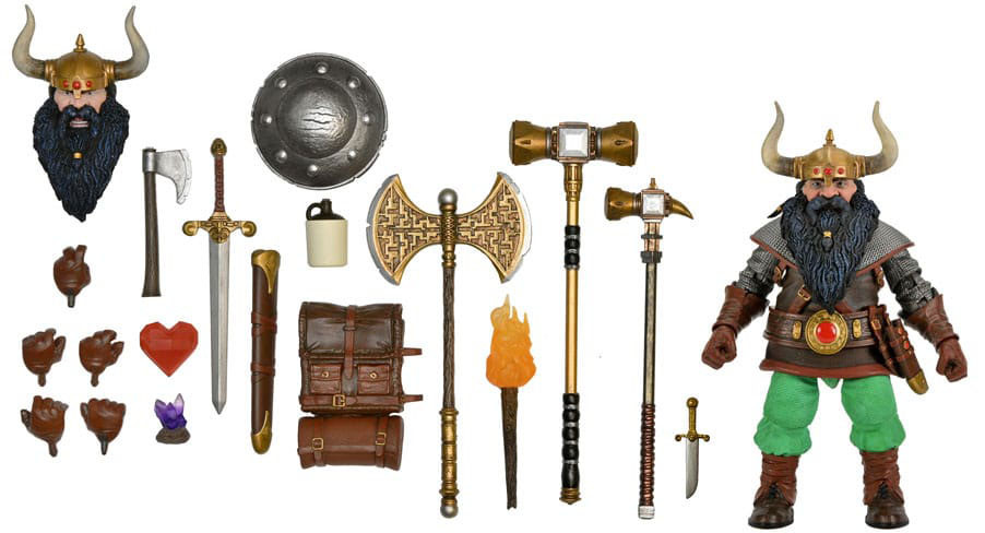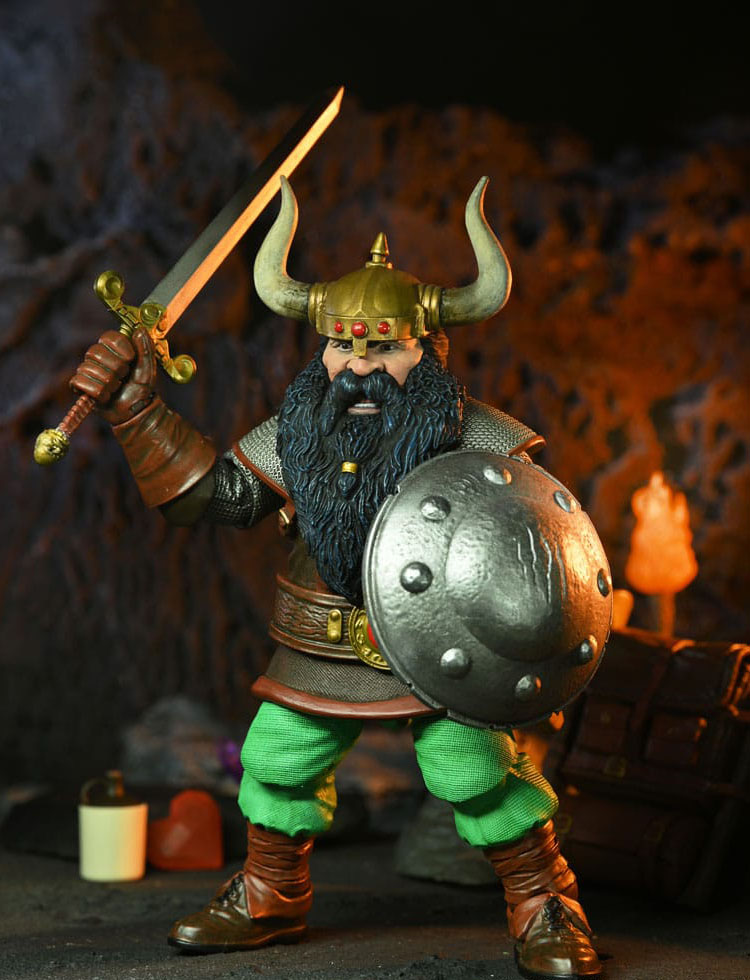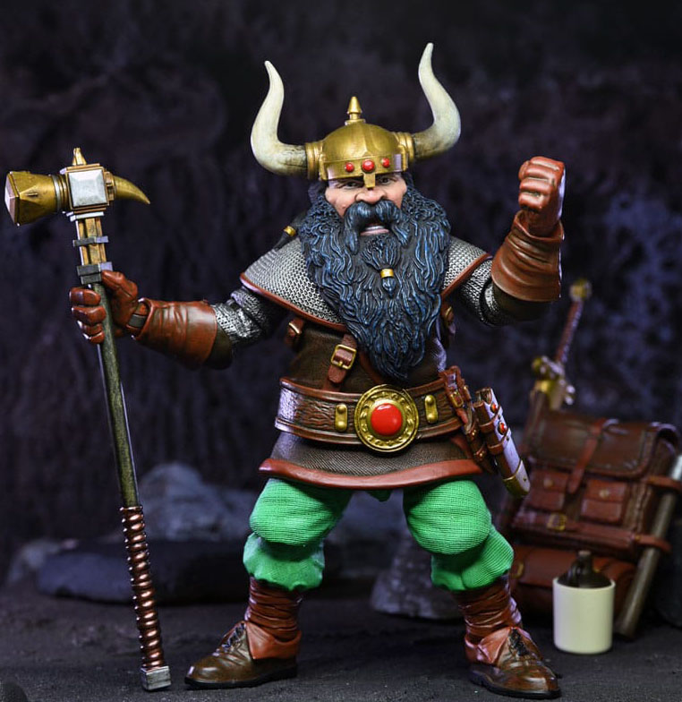Från historien av Dungeons and Dragons! NECA har hämtat inspiration från den klassiska actionfiguren och omtolkat den för den moderna samlarmarknaden genom att dra nytta av alla dagens framsteg inom teknik och verktyg. Elkhorn den gode dvärgkämpen är väl packad för episka äventyr och strider mot sina illvilliga fiender. Den här detaljerade actionfiguren levereras med svärd och slida, sköld, öppningsbar ryggsäck, skäggyxa, stridsyxa, krigshammare, krigshacka, dolk, Gutbuster-kanna, fackla, hjärtsten, kristaller, alternativt huvud och utbytbara händer. Samlarvänlig Ultimate-förpackning med öppningsbar frontklaff.