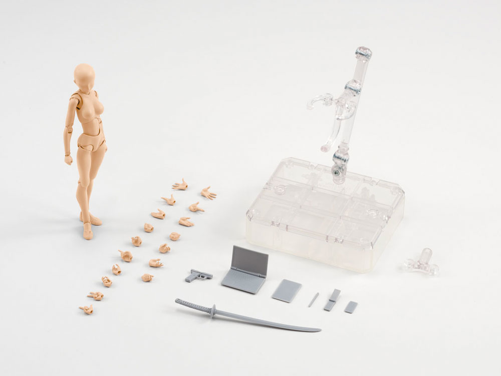 A new deluxe set featuring a pale orange color version of the popular generic Woman action figure with a whole range of cool accessories! The highly posable 14 cmfigure includes 7 optional left hands, 10 optional right hands, a minibook, a laptop PC, a tablet PC, a model gun, a training sword, a pen, a smartphone, a flip phone, and a stand.