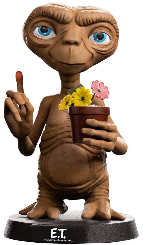 In the year it completes its 40-year anniversary since its premiere on the big screen, Iron Studios proudly presents their statue "E.T. - ET - MiniCo", a tribute to fans and to the movie masterpiece. With his expressive big blue eyes and a smile filled with gentleness, the small and lovely visitor from another world holds in his left hand a flowerpot, something special for him as an alien botanist, while he gestures with his right hand's big fingers, using his telepathic abilities to revive the flowers just like in the movie scene that made him loved and known in the entire world.