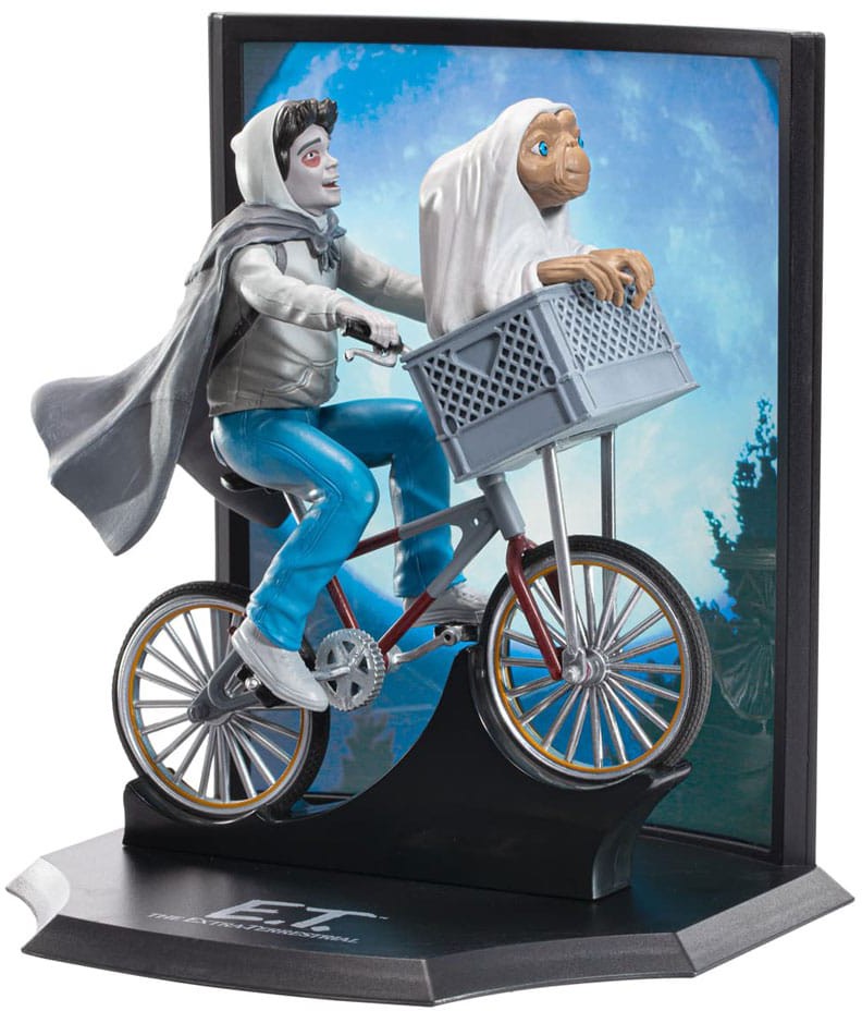A hand-painted plastic diorama of a E.T. and Elliot. Elliot and E.T.'s escape on the bike.