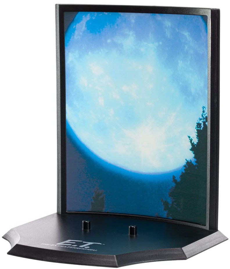 Ett handmålat diorama av E.T. och Elliot. Elliot och E.T:s flykt på cykeln.