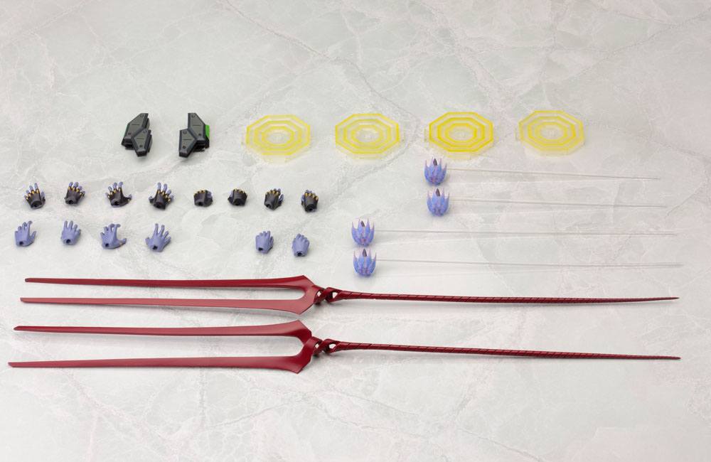 Consisting of over 400 pieces, this plastic model kit stands 19 cm tall in 1/400 scale (not including the length of the weapons).