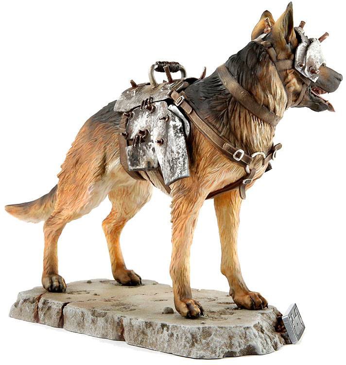 This statue was created directly from Bethesda's 3D assets to ensure 100% authenticity. Dogmeat does come equipped with armor to jump all over those feral ghouls and includes a second armor-free head to be displayed in his playful, non-fighting doggy grin.