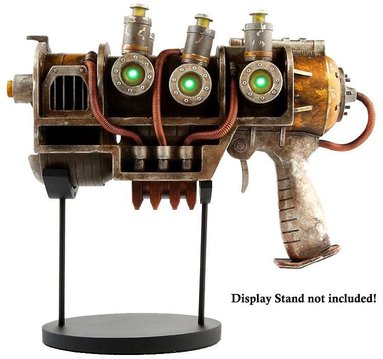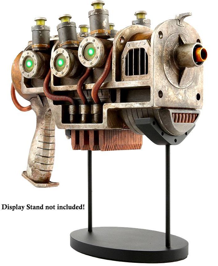 This prop replica was created from Bethesda's 3D assets for 100% authenticity. This item features LED lights on either side to simulate the microfusion cell spinning up prior to firing and will be crafted from injected plastics for long-time durability. Be sure to pick up extra plasma cartridges so you don't run out of ammo mid-skirmish with the raiders!