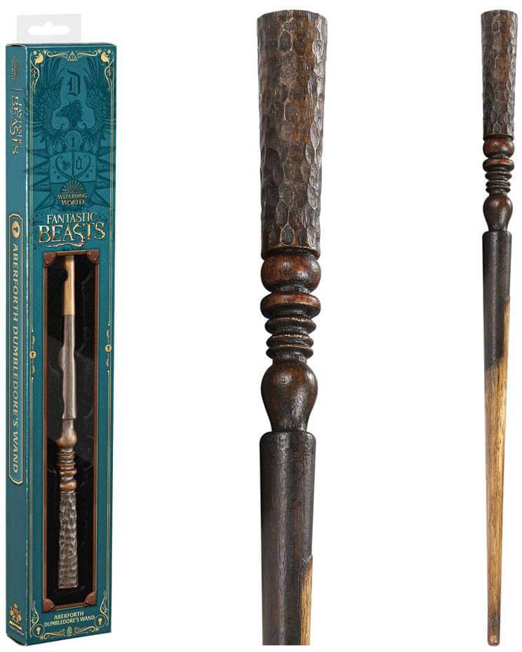 En autentisk replika av Aberforth Dumbledores trollstav. Denna handmålade och mycket detaljerade replika av trollstaven är cirka 13,5 tum lång och levereras i en fyrfärgslåda med ett genomskinligt fönster.