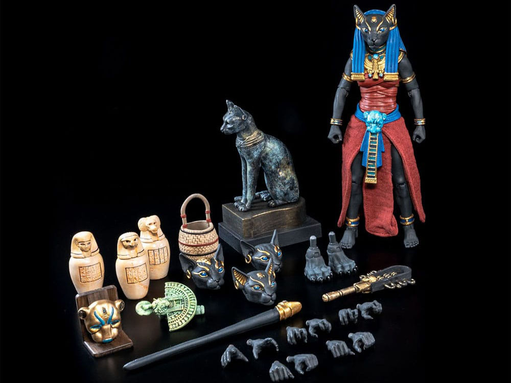 Part of our first Figura Obscura drop of 2024 (where she was paired with Anubis), the "black and red" edition of the Gods of Ancient Egypt Bastet is being offered individually as part of the 2025 Retailer Wave. The retailer version of Bastet includes all the parts from the original release presented in new decos. The figure comes with multiple heads, hands, and feet options and a variety of character -specific accessories, including recreations of actual Egyptian antiquities. Like all Figura Obscura releases, Bastet will come in deluxe packaging with a magnetic front cover and mini-booklet included.