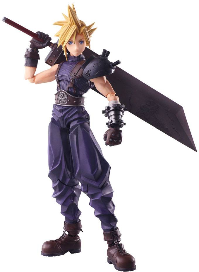 Figuren kommer med en mängd olika utbytbara händer och Clouds ikoniska vapen, Buster Sword, som kan hållas i hans händer eller bäras på ryggen.