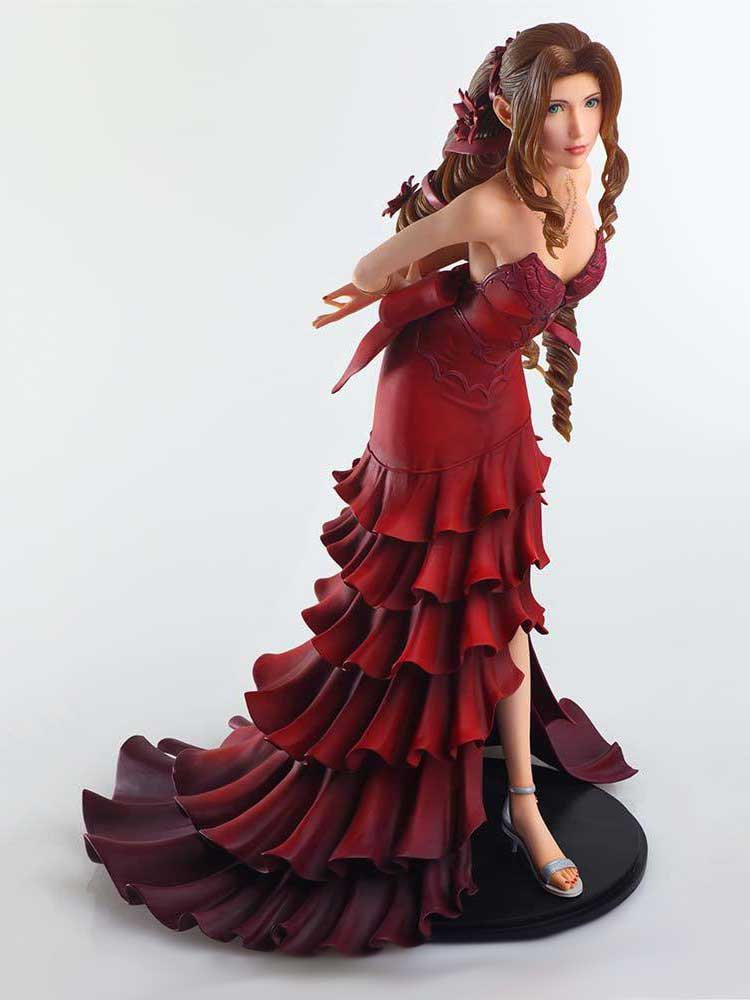 Aerith, from FINAL FANTASY VII REMAKE, makes her appearance in the STATIC ARTS statuette line, clad in her extravagant red dress!
