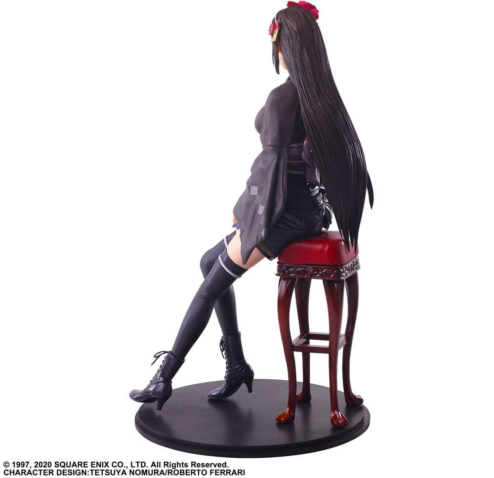 The owner of the Seventh Heaven bar goes through a total image makeover that includes a flower ornament in her hair and a luxurious obi wrapped around her. She comes with an interchangeable face, interchangeable sleeves that allow her to be posed with her sleeves open, various interchangeable hands, and hair that flutters behind her back, allowing you to recreate a wide range of scenes from the game.