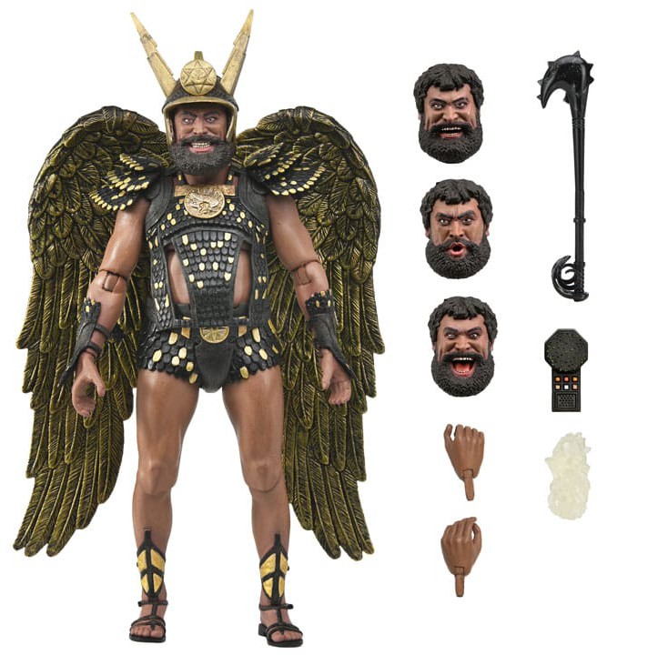 Pathetic Earthlings... who can save you now? From the classic 1980 live-action Flash Gordon movie, Vultan is the golden-winged prince of Sky City and eventual ally of Flash in his battle against the evil Ming the Merciless! This Ultimate 7" scale action figure features the likeness of iconic actor Brian Blessed and is highly articulated, with 3 interchangeable heads, interchangeable hands, mace, crystal, remote control, helmet, and articulated wings. Comes in display-friendly window box packaging with opening front flap.