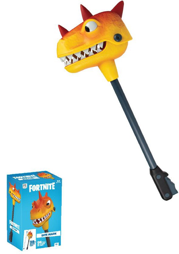 - The Bitemark Harvesting tool is showcased in premium glossy Fortnite themed packaging