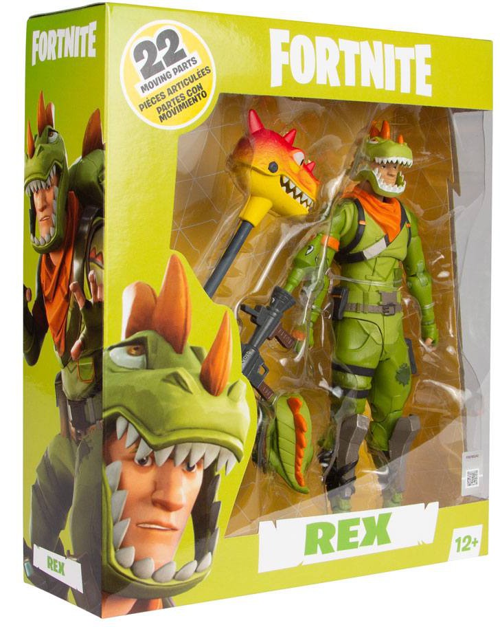 - Rex is showcased in premium glossy Fortnite-themed window box packaging