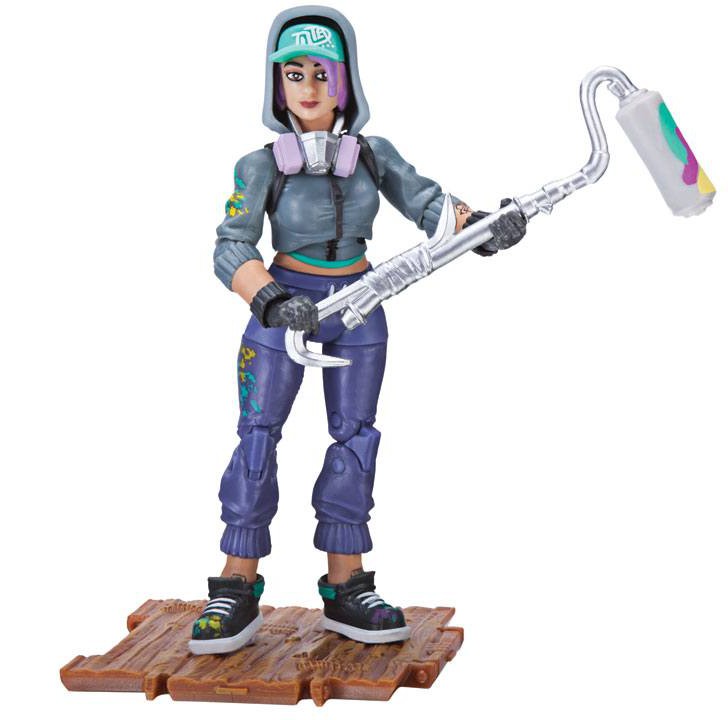 Fortnite Solo Mode Collectible Figures! Dessa ledade actionfigurer har otroliga detaljer, klädesplagg och levereras med fantastiska verktyg. Skalan på 4 tum är perfekt för att leva ut Fortnite; passar in i en värld rik på byggupplevelser, segelflygplan, fordon och mycket mer. Sortimentet har Carbide, Drift, Bandolier, Raptor och Teknique. Samla dem alla!