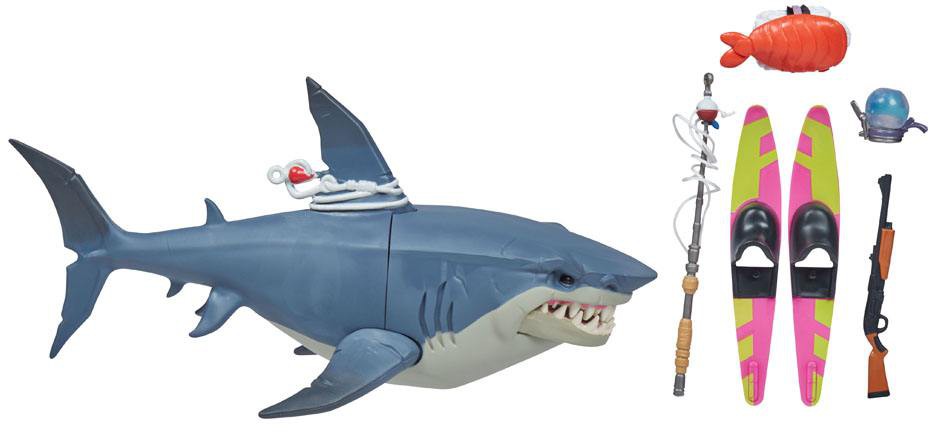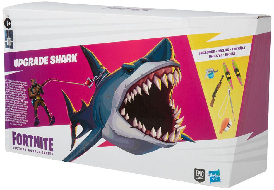 You're gonna need a bigger fishing rod. This 6-inch Upgrade Shark action figure has game-level detail, articulated jaw, and sculpted insides! Split the figure apart to reveal accessories! Includes Shrimpy Back Bling, fishing rod, shield potion, 2 water skis, and pump shot weapon accessories. Attach water ski accessories to other figures and fishing rod accessory to figure's dorsal fin to pose riding in style!