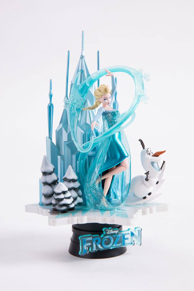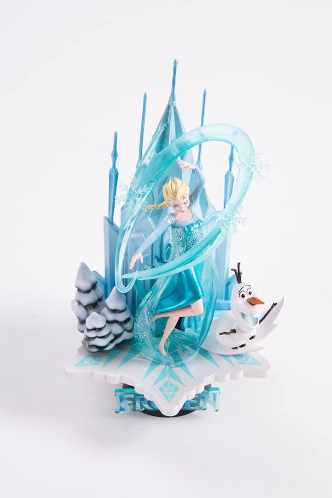 Beast Kingdom continues to tradition of replicating your favorite scenes from animated films produced by Walt Disney Animation Studios and this D-Select 005 Frozen set is the latest work of the D-Select line! This diorama is meticulously detailed and perfectly capture the the essence of Frozen, showing Elsa's confident look and elegant posture with precision 3D sculpting. This diorama is not only sculpted in gorgeous detail, but also painted by hand in vibrant colors as seen in the movies. It uses a luminescent paint to make the snow shimmery and wet looking.