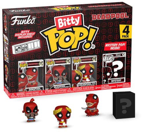 Var vänlig ställ din fråga om produkten "Funko Bitty POP! Deadpool 4-Pack Series 3" nedan, så svarar vi så snart som möjligt!
