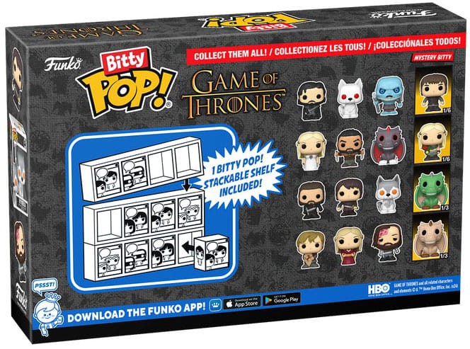 Var vänlig ställ din fråga om produkten "Funko Bitty POP! Game of Thrones 4-Pack Series 4" nedan, så svarar vi så snart som möjligt!