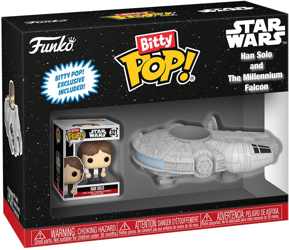Var vänlig ställ din fråga om produkten "Funko Bitty POP! Rides: Star Wars - Han Solo and The Millenium Falcon" nedan, så svarar vi så snart som möjligt!