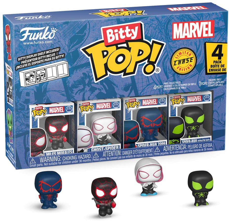 Var vänlig ställ din fråga om produkten "Funko Bitty POP! Spider-Man 4-Pack Series 2" nedan, så svarar vi så snart som möjligt!
