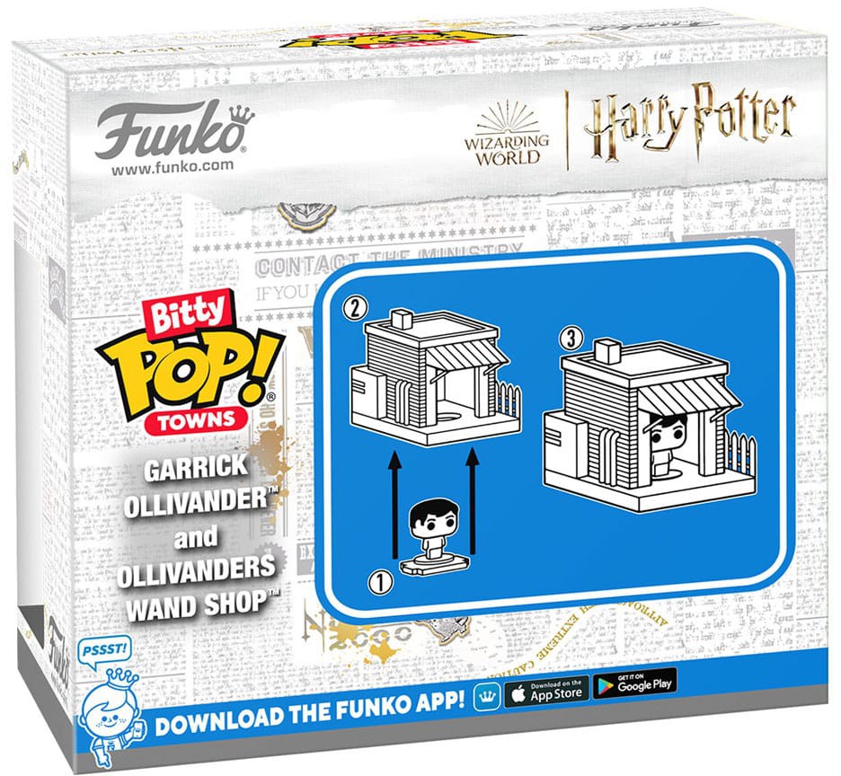 Var vänlig ställ din fråga om produkten "Funko Bitty POP! Towns: Harry Potter - Garrick Ollivander and Ollivanders Wand Shop" nedan, så svarar vi så snart som möjligt!