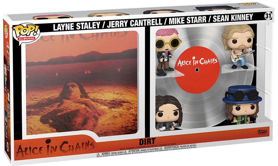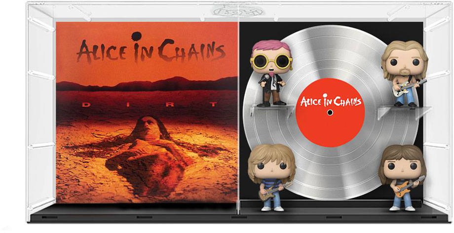 Celebrate 30 years of Alice in Chains' second studio album Dirt with this Deluxe Pop! Album! Never forget the iconic album or the music of Alice in Chains by collecting this Deluxe Pop! Album Dirt, featuring each of the band members as Pop! figures and the album cover art. Packaged together in a protective hardcase, this Deluxe Pop! Album can be hung on a wall or placed on a shelf next to your music collection. Pop! Layne Staley, Pop! Jerry Cantrell, Pop! Sean Kinney, and Pop! Mike Starr are ready to rock in their legendary stage outfits.