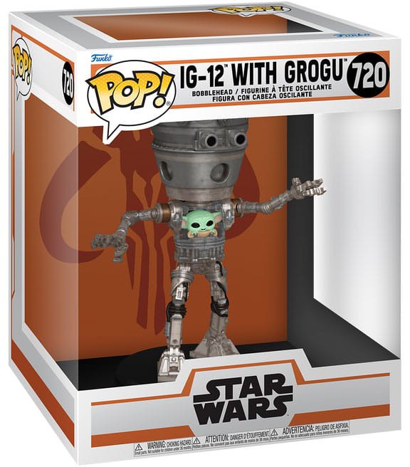 Var vänlig ställ din fråga om produkten "Funko POP! Deluxe: Star Wars The Mandalorian - IG-12 with Grogu" nedan, så svarar vi så snart som möjligt!