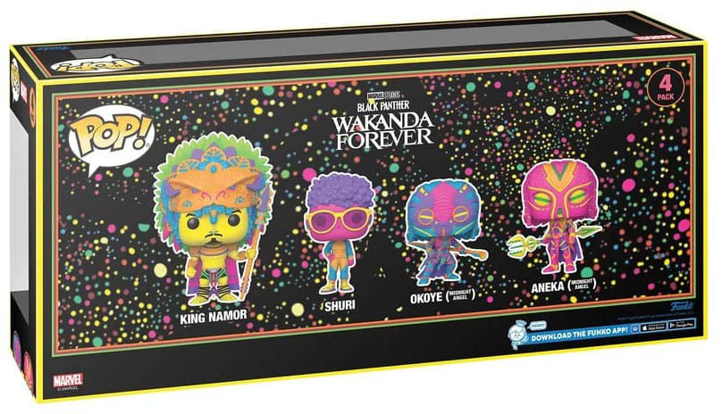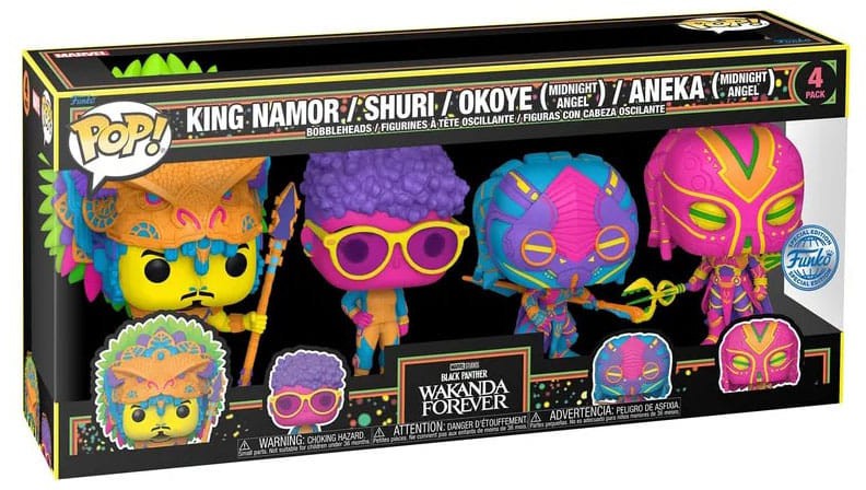 Var vänlig ställ din fråga om produkten "Funko POP! Marvel: Black Panther - Wakanda Forever 4-Pack" nedan, så svarar vi så snart som möjligt!