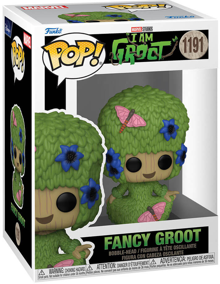 Var vänlig ställ din fråga om produkten "Funko POP! Marvel Studios: I Am Groot - Fancy Groot" nedan, så svarar vi så snart som möjligt!