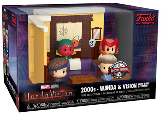 Make Halloween memories with Wanda and Vision with this exclusive Marvel Wanda & Vision 2000s Pop! Mini Moment. Enter Wanda & Vision's living room, which is decorated for Halloween. Pop! Wanda, Pop! Vision, Pop! Billy and Pop! Tommy have gathered, wearing retro costumes. Help them hold onto this family bonding moment and add them to your set. Collect Pop! Mini Moments to re-create scenes of your favorite Marvel characters, movies, and shows. Vinyl figures are approximately 1.5-inches tall, while set piece is approximately 3.75-inches tall and 5.25-inches wide.