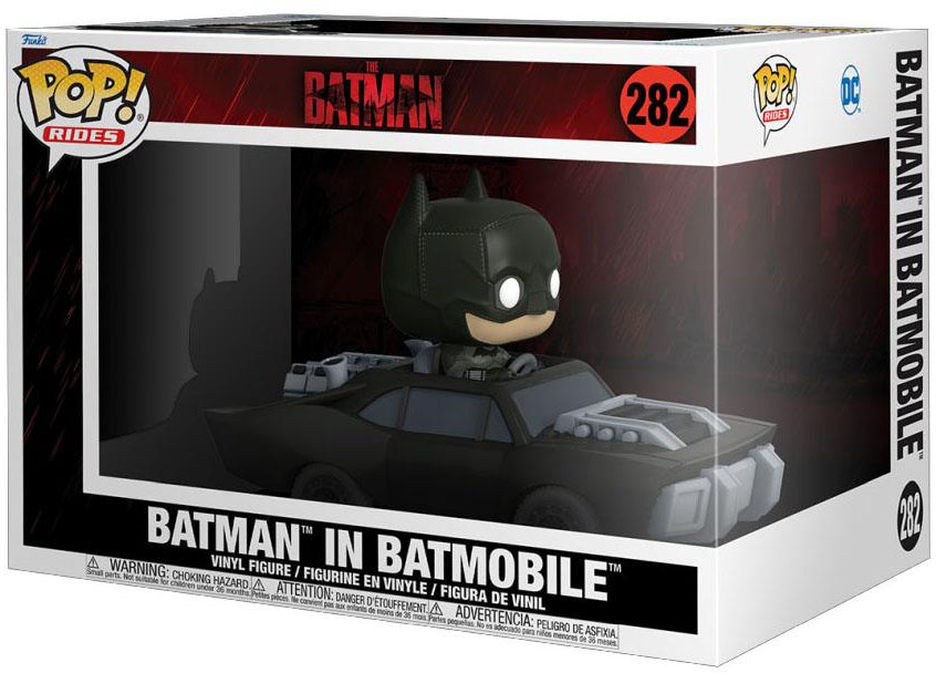 What zooms through the gritty streets of Gotham in search of vengeance? The Batmobile, driven by Batman. Take a ride with Pop! Rides Batman in Batmobile and add to your collection of The Batman.