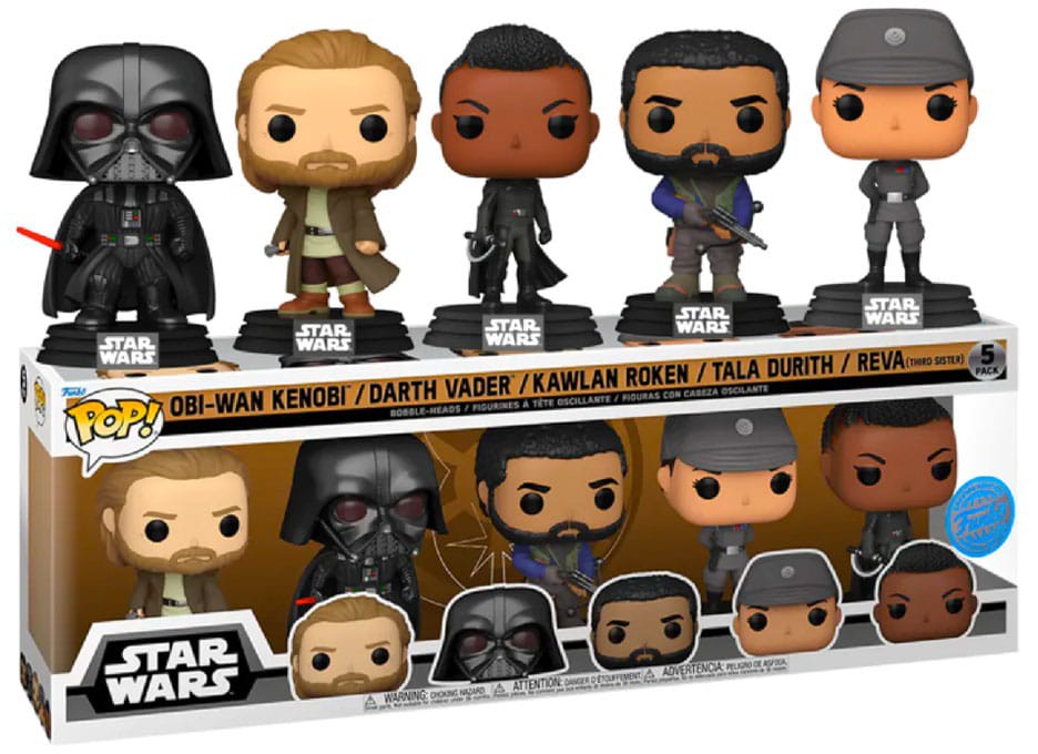 Var vänlig ställ din fråga om produkten "Funko POP! Star Wars: Obi-Wan Kenobi - 5-Pack Obi-Wan Kenobi, Darth Vader, Kawlan Roken, Tala Durith and Reva (Third Sister)" nedan, så svarar vi så snart som möjligt!