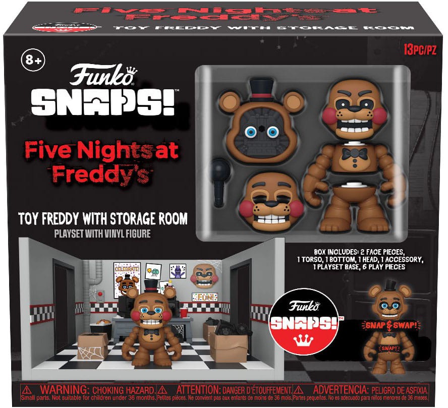 Var vänlig ställ din fråga om produkten "Funko Snaps!: Five Nights at Freddy's - Freddy's Room" nedan, så svarar vi så snart som möjligt!