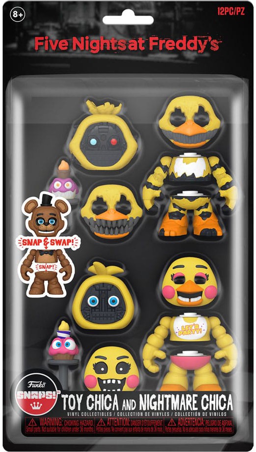 Var vänlig ställ din fråga om produkten "Funko Snaps!: Five Nights at Freddy's - Nightmare Chica & Toy Chica" nedan, så svarar vi så snart som möjligt!