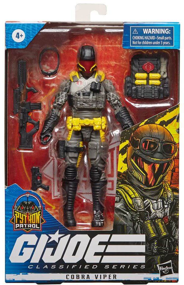 This Cobra Viper figure comes ready for action, with multiple points of articulation for high poseability and 5 character-inspired accessories. And with custom artwork by Anthony Petrie, the G.I. Joe Classified Series Cobra Viper package will make a mark on shelves.