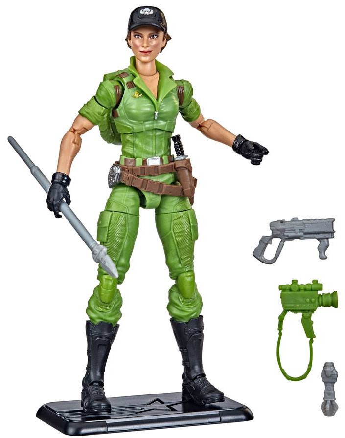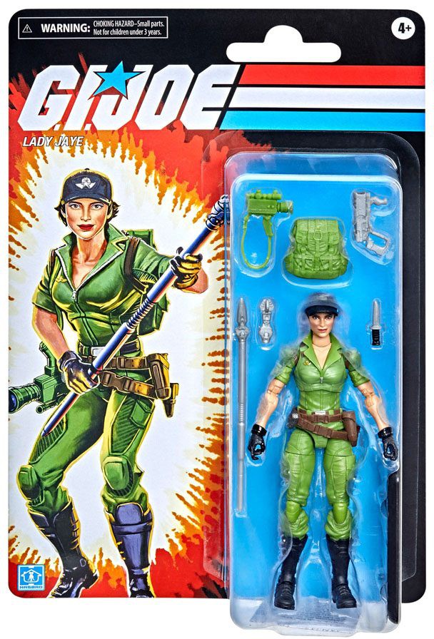 - This Lady Jaye figure is presented in packaging that features design inspired by the Real American Hero figure line