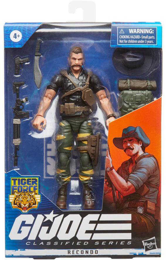 This Recondo figure comes ready for action, with multiple points of articulation for high poseability and 6 character-inspired accessories including his path-clearing machette and signature slouch hat. And with custom artwork by Robert Sammelin, the G.I. Joe Classified Series Recondo package will make a mark on shelves.