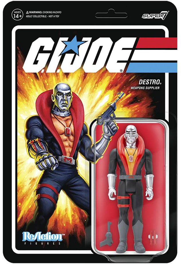 Arguably the brains behind the best Cobra plots and doomsday devices, Destro and his plans are often inadvertently thwarted by Cobra Commander's meddling ways and delusions of grandeur. This 3.75" G.I. Joe ReAction figure of Destro features his iconic metallic face and comes with pistol and wrist rocket accessories. Just as his evil machinations are thwarted before reaching their full potential, your collection would be lacking without including the Destro ReAction figure!