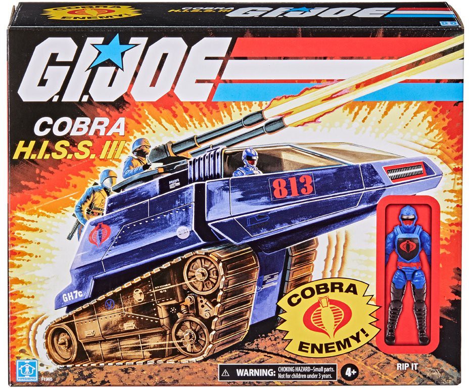 G.I. Joe Retrofigurer och fordon i skala 3,75 tum kommer i förpackningar som har original retro-Hasbro-märkning.