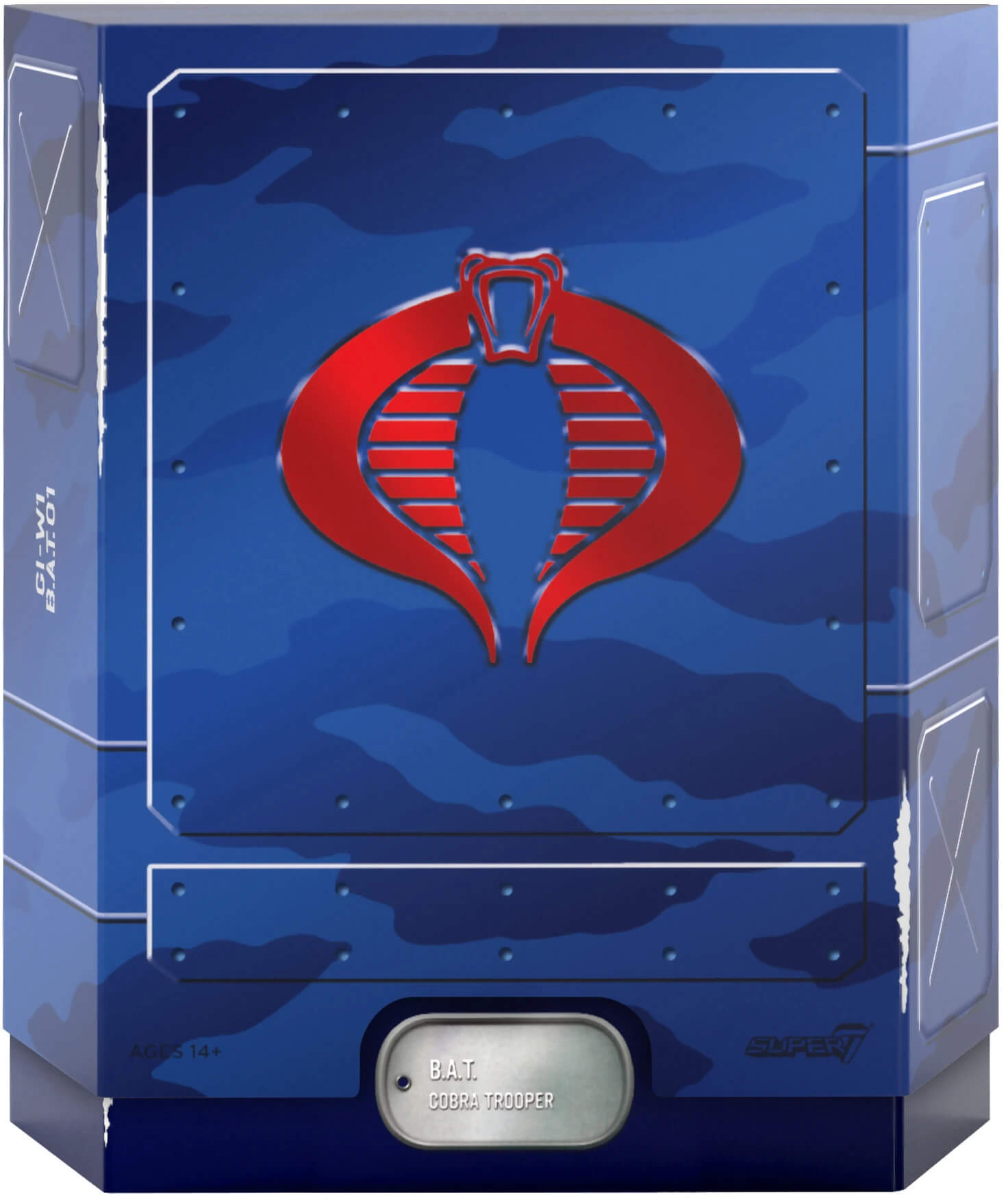 They may lack the over-the-top dramatic flourishes exuded by many of Cobra's notable characters, but Cobra Battle Android Troopers (B.A.T.) more than make up for that in their ability to unleash pure battlefield carnage and mayhem! The made-to-order 7" scale fully articulated G.I. Joe ULTIMATES! figure of the Cobra B.A.T. comes with interchangeable heads and hands, and a variety of accessories, including battle damaged pieces, weapon attachments, multiple guns and more! Dr. Mindbender's creation may give the G.I. Joes nightmares, but the Cobra B.A.T. ULTIMATES! figure will be a dream to have in your collection! Accessories: - 2 interchangeable heads (Regular head, Battle-damaged head with clear sparks) - 6 interchangeable hands (2x Fist hands, 2x Rifle grip hands, 2x Pistol grip hands) - Removable clear chest cover - Claw arm attachments - Gun arm attachments - Torch arm attachments - Backpack - Rifle - Pistol (fits in holster) - Grenades (attaches to chest) - Battle-damaged lower arm - Battle-damaged neck with clear sparks - Clear electrical damage spark (attaches to chest)